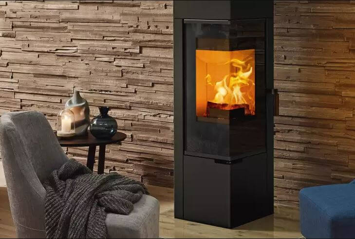 Bij de houtkachel FORMA gaat het om een slanke en ruimtebesparende kachel in de typerende designstijl van Rika.