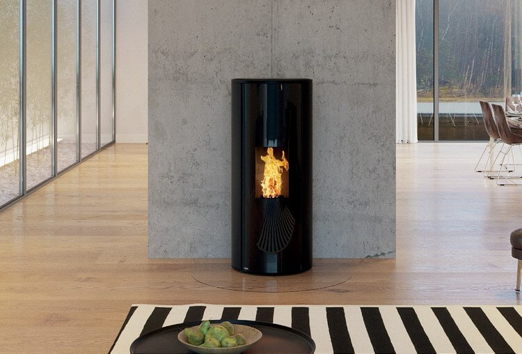 Het doorlopende panoramavenster, geïntegreerd in de compromisloze ronde vorm, maakt hem tot de mooiste van alle ronde pelletkachels.